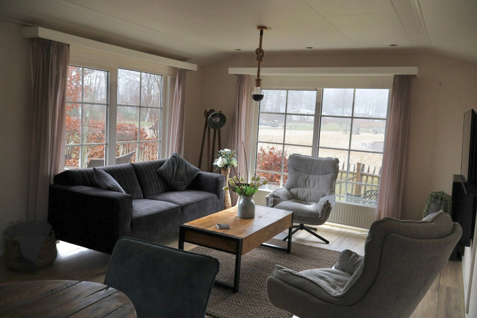 Stap binnen in de woonkamer en voel je meteen thuis. Twee heerlijke loungestoelen, een zachte bank en een robuuste eettafel met zes stijlvolle stoelen wachten op gezellige avonden en lange gesprekken. Natuurlijk ontbreekt het je niet aan comfort: een smart TV en snelle WiFi zijn standaard aanwezig.
